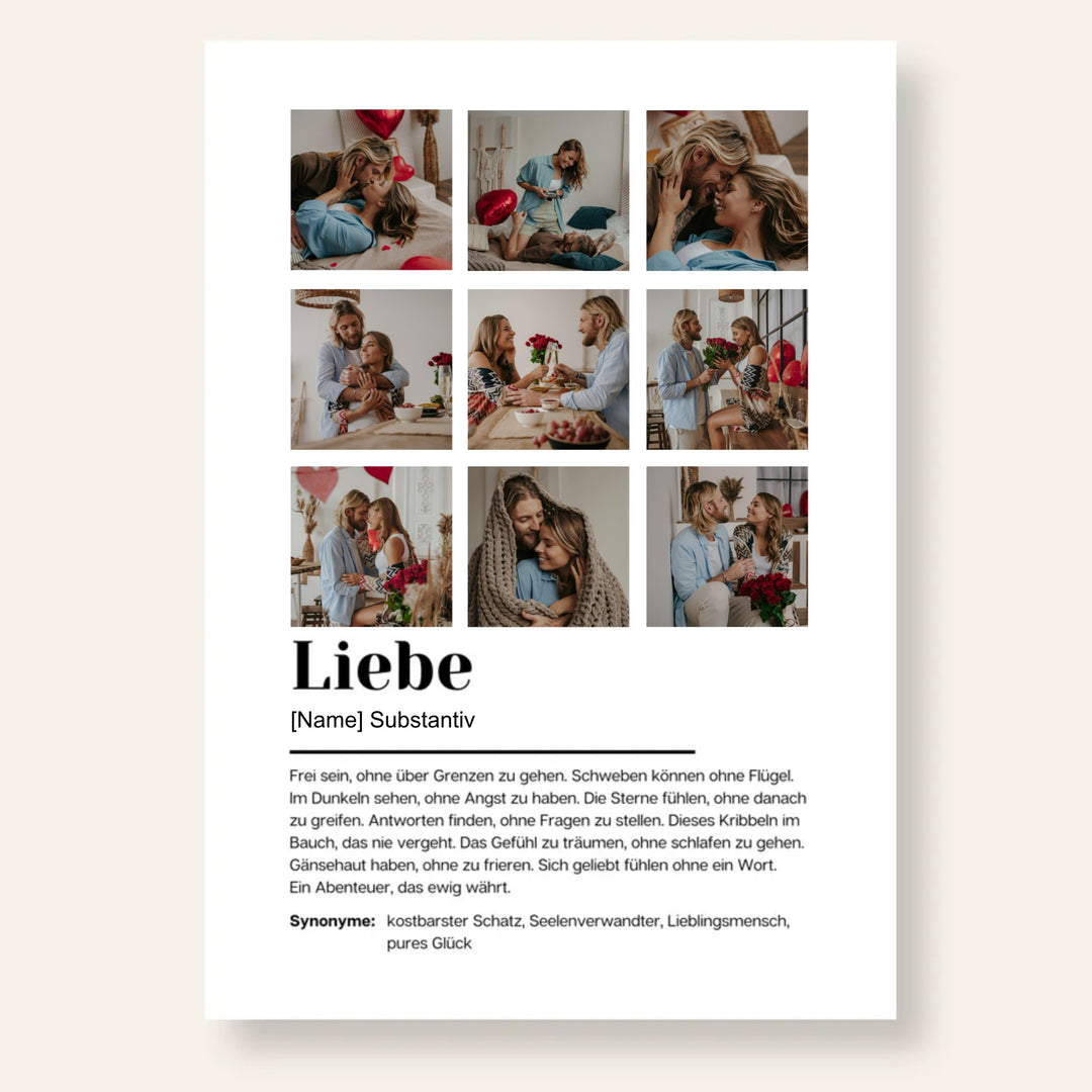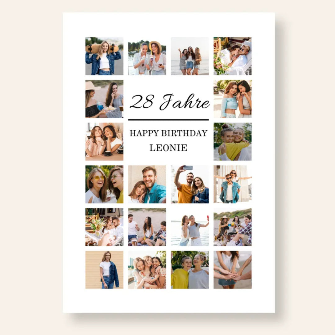 Ob zum Geburtstag, zur Hochzeit, zum Jubiläum oder einfach nur, um deine Liebe und Wertschätzung auszudrücken - ein personalisiertes Collage Poster ist das perfekte Geschenk für jeden Anlass. Überrasche deine Liebsten mit einem Kunstwerk, das ihre Herzen berührt und sie an besondere Momente erinnert.