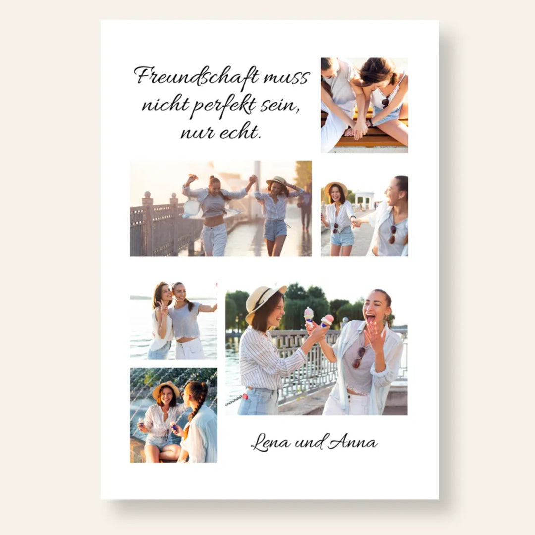 Erwecke deine schönsten Momente zum Leben mit unseren personalisierbaren Collage Postern. Diese einzigartigen Kunstwerke bieten die Möglichkeit, eine Vielzahl von Bildern auf einem Poster zu vereinen und so die Vielfalt deiner Erinnerungen zu zeigen. Ob als Geschenk für besondere Anlässe oder als Dekoration für dein Zuhause - unsere Collage Poster sind eine kreative und emotionale Möglichkeit, Erinnerungen festzuhalten.